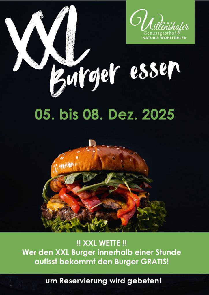 Wieder mit der XXL WETTE, wer den XXL Burger innerhalb einer Stunde alleine aufisst bekommt den Burger Gratis!! Reservierung erforderlich